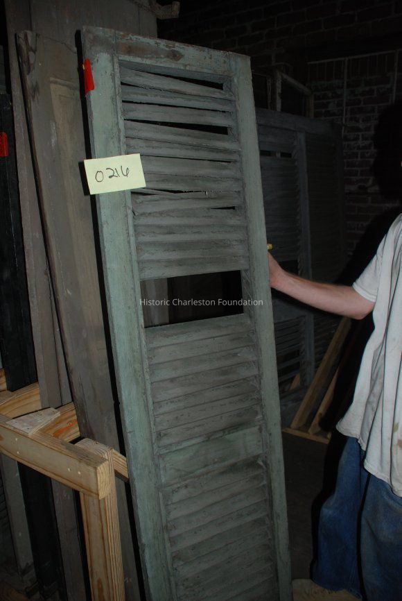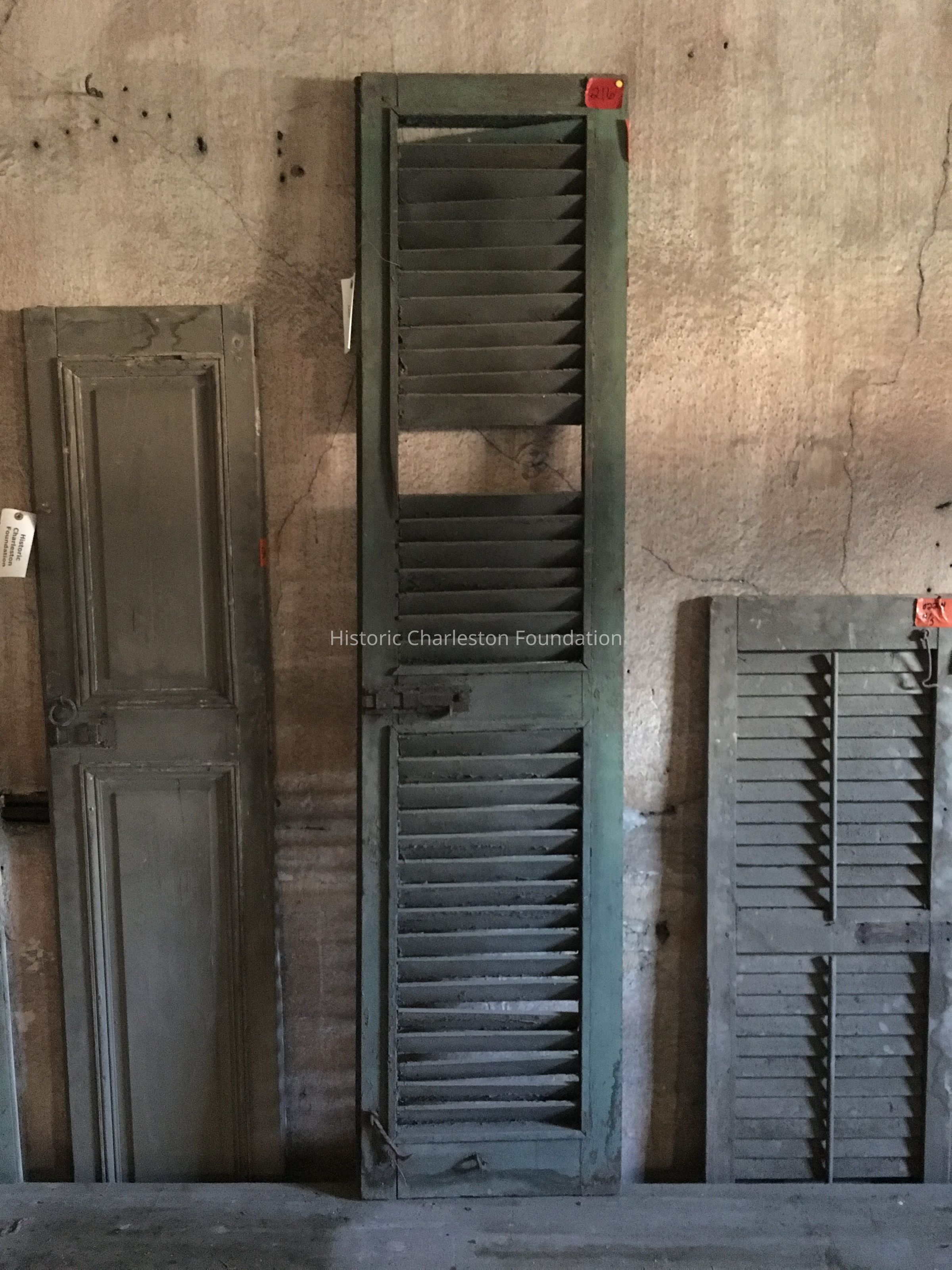 Wood Georgian shutter, ca. 1770-1805. Fixed louver with square astragal molding. A few missing slots and a few detached at one side near top of shutter.Collection