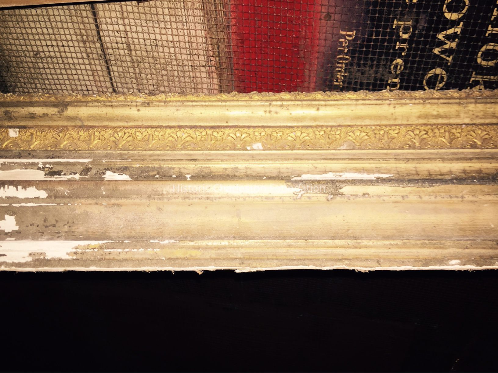 Gilded cornice with applied decorative Victorian plaster work. Measures 5 ft.Collection