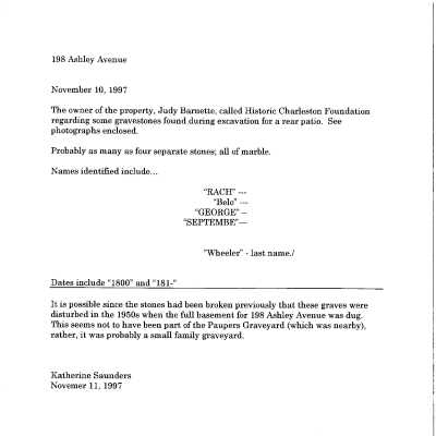Gravestone Fragments Found at 198 Ashley AvenueEntry/Object ID