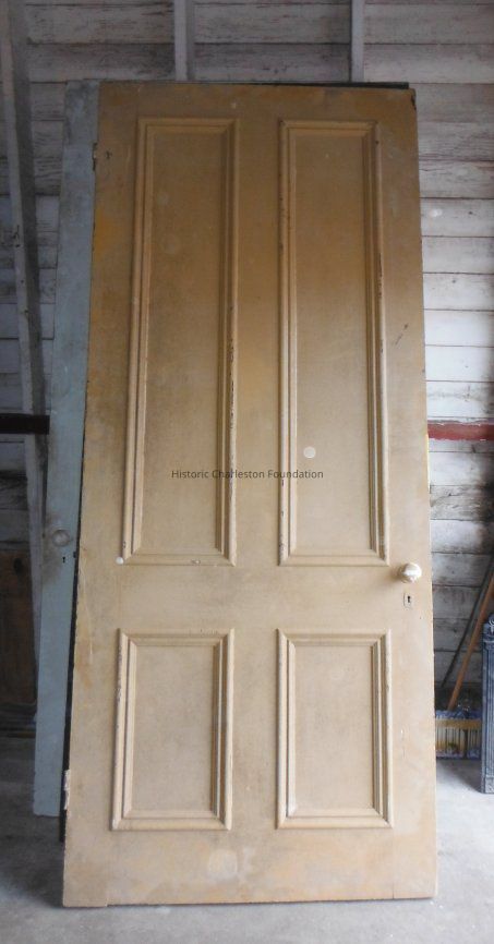 Greek Revival four-panel door. Measures 95" x 40" x 1.5". Has original hardware (door knobs and locks). Removed from ca. 1860 house at 202 S. Hickory Street (Summerville).Collection