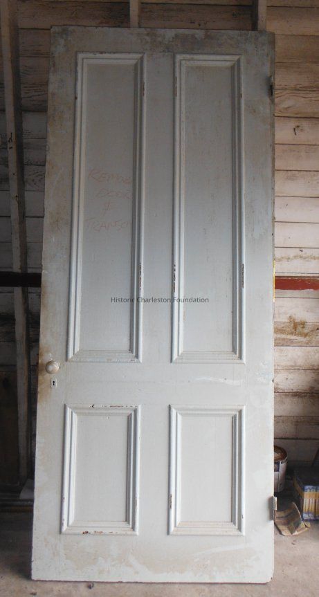 Greek Revival four-panel door. Measures 95" x 40" x 1.5". Has original hardware (door knobs, locks, and hinges). Removed from ca. 1860 house at 202 S. Hickory Street (Summerville).