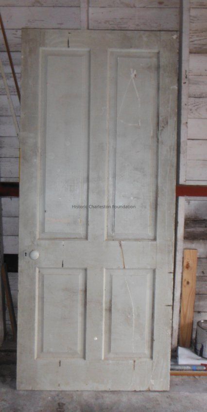 Greek Revival four-panel door. Measures 84" x 36" x 1". Has original hardware (door knobs, locks, and hinges). Removed from ca. 1860 house at 202 S. Hickory Street (Summerville).Collection