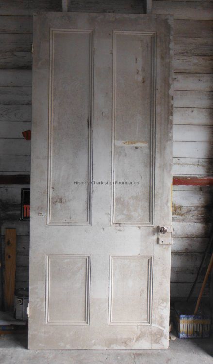 Greek Revival four-panel door. Measures 95" x 40" x 1.5". Has original hardware (door knobs, locks, and hinges). Removed from ca. 1860 house at 202 S. Hickory Street (Summerville).Collection