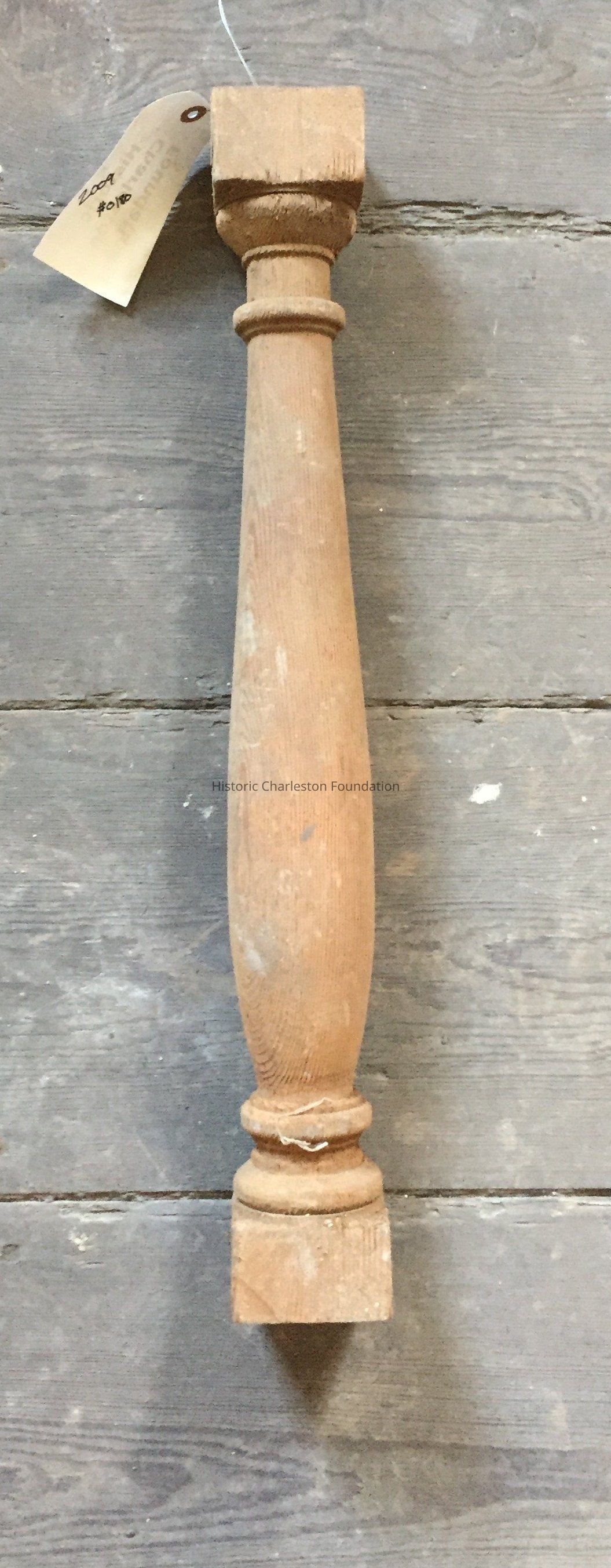 Reproduction Greek Revival piazza spindle. Good example of errors in reproduction pieces. Has some rotting.Collection