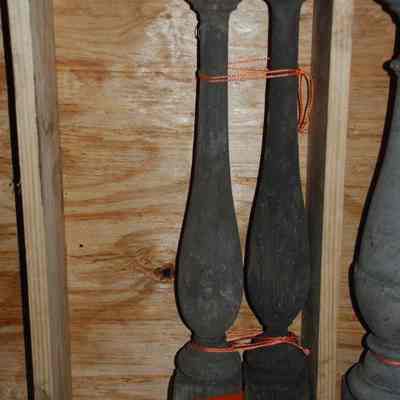 Two Greek Revival spindles. Have an interesting base turning detail. Pieces are broken off and there are cracks.Collection