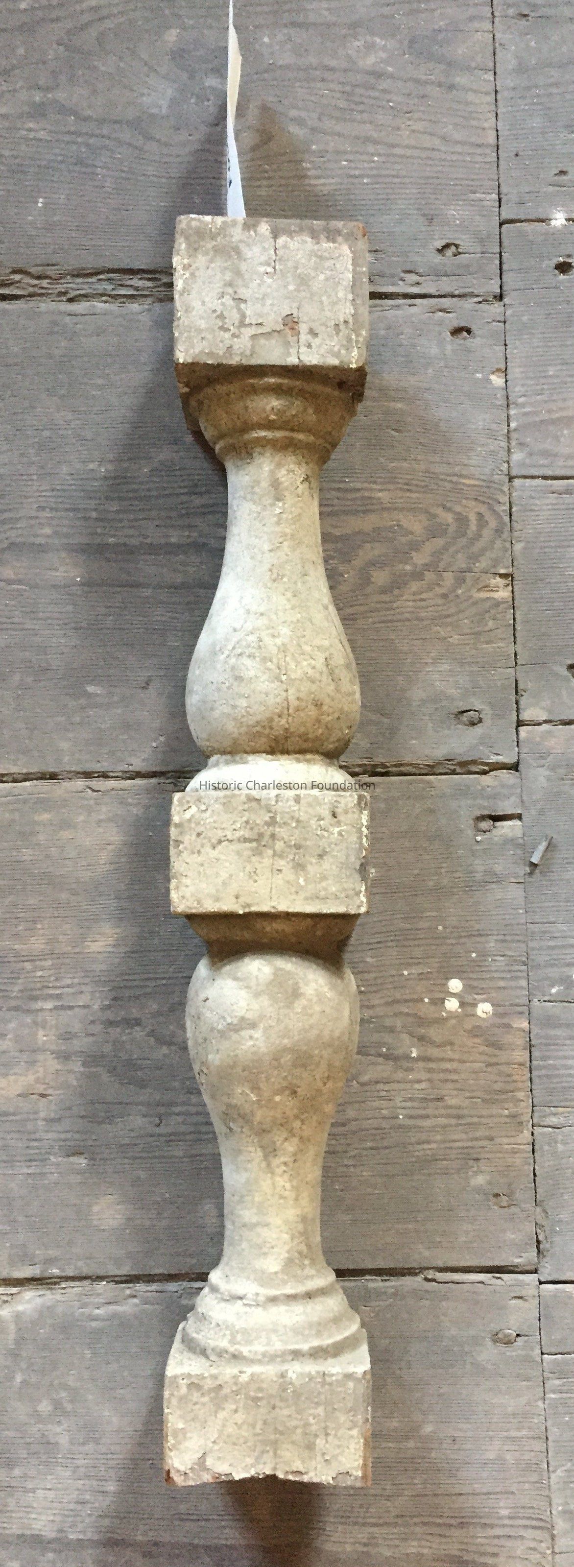 Wood spindle. Greek Revival, ca. 1820-1860. Has a Classical double turning. Some pieces chipped off.Collection