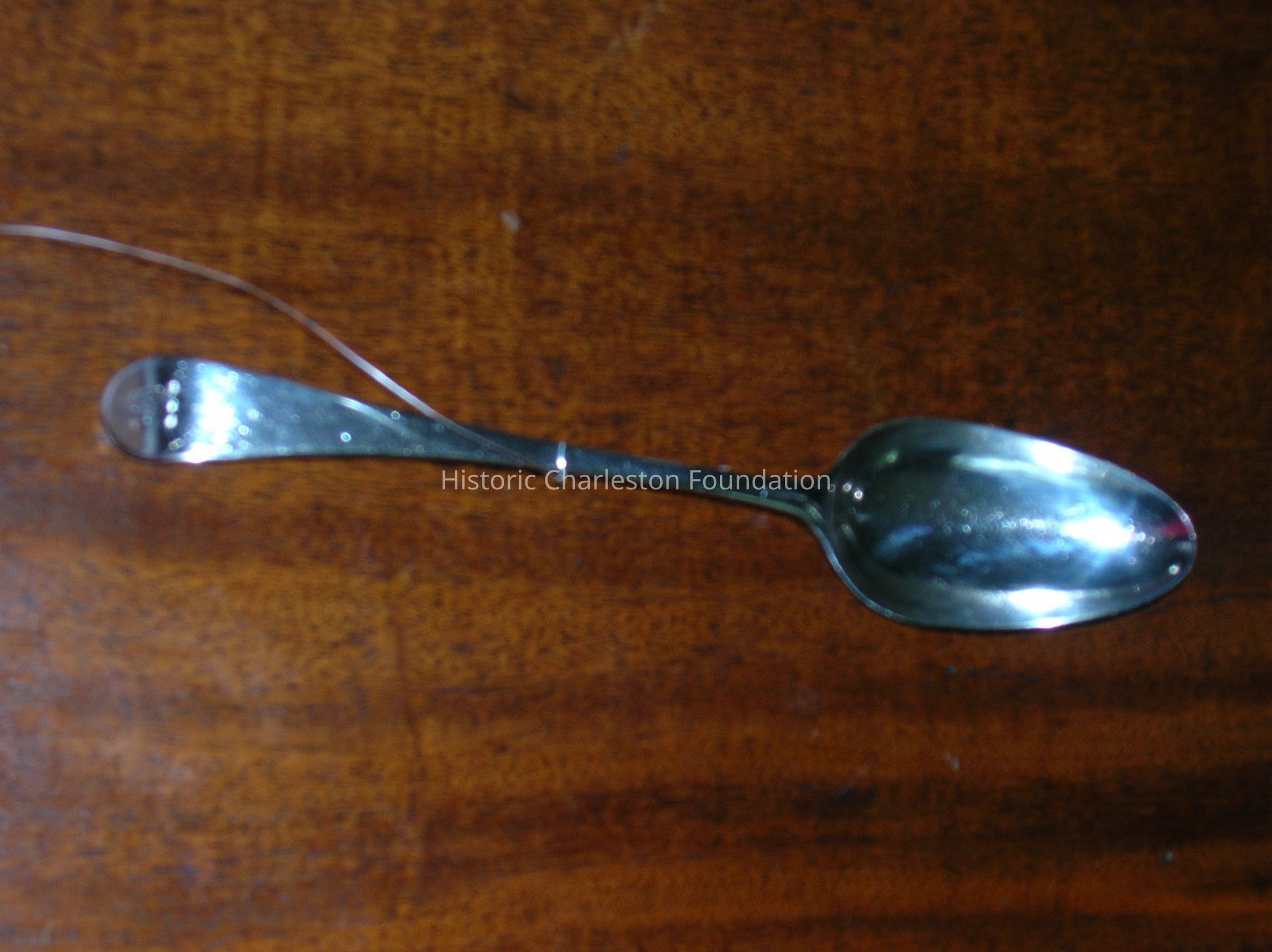 The monogram "JMCG" on the spoon undoubtedly represents the initials of James and Mary Christiana Gregorie. Mary Christiana Gregorie nee Hopton was the sister of Mrs. Nathaniel Russell and the aunt of Alicia Hopton Russell Middleton.Collection