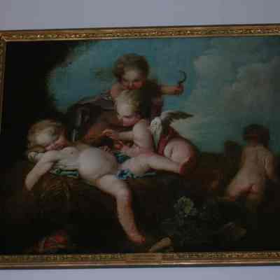 No changes to painting since incoming report of 4/9/02. Surface of painting and frame were dusted with soft natural brush. No flaking occurred.Overall Condition
