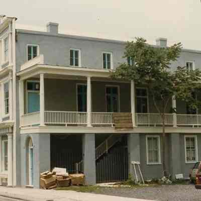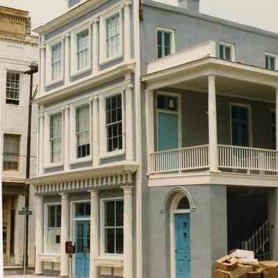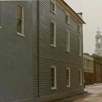 b: West (front) elevation showing the edge of the north elevation and the street corner (King Street and Horlbeck Alley).
