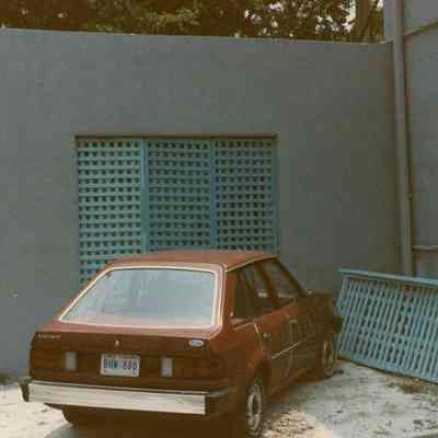 a: West (front) elevation. Sign for RTW [shop] on stand in front of entrance.