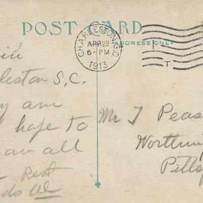 Back of postcard is postmarked April 22, 1913, and has a one-cent postage stamp.Collection