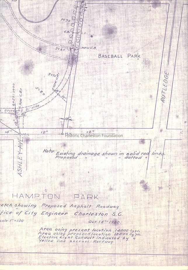 Sketch by the Office of City Engineer Charleston, SC, showing proposed asphalt roadway in Hampton Park.