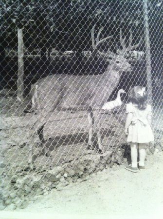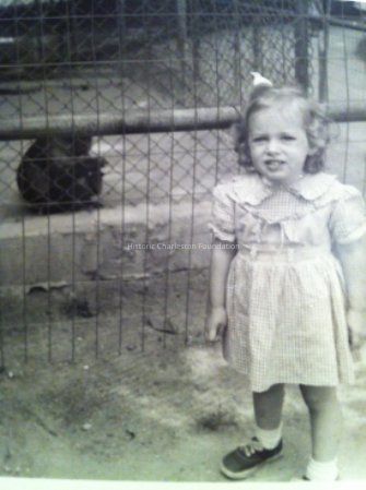 B&W photograph (scan) of Hampton Park, ca. 1950s, showing a young girl at the zoo.Collection