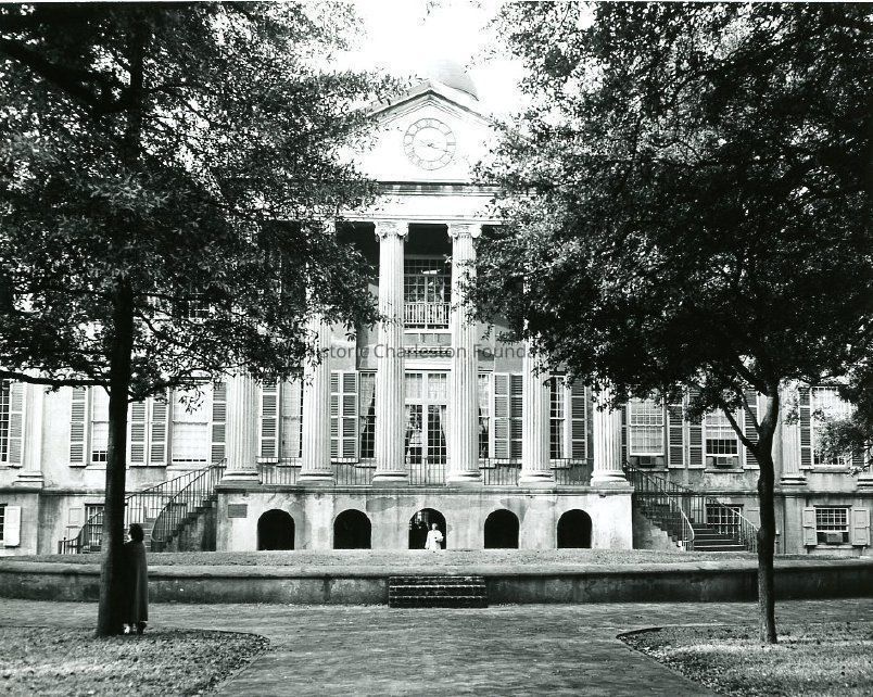 B&W photograph of Harrison Randolph Hall on the College of Charleston campus (66 George Street), north (front) elevation.