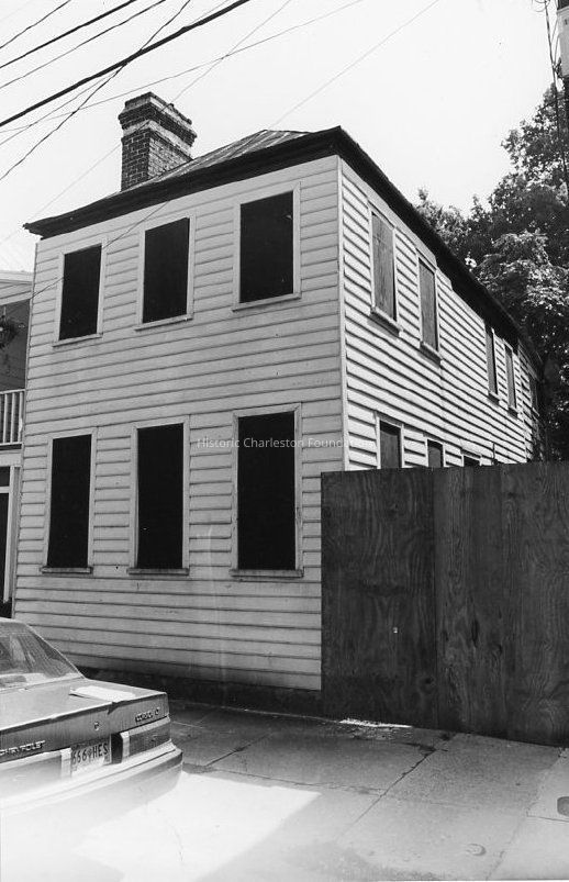 B&W photograph of the Henry Gefken House (126 Logan Street), southeast corner. Photographed as part of "Historic Charleston Foundation's Endangered Structures Report" (see P156).Collection