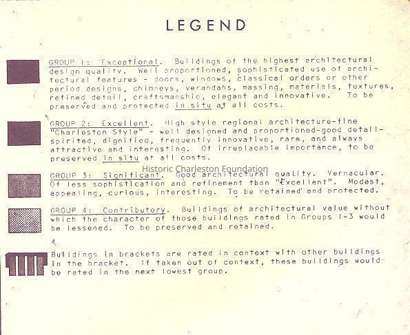 9 page collection of maps of the Charleston Peninsula notating various building's architectural design quality. These maps were an integral part of the 1974 Historic Preservation Plan, and were presumably created in conjunction with the preparation of the Plan.