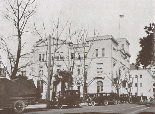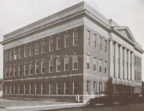 *Physiology-pharmacology building constructed in 1920 on the north edge of what was known as "the Quadrangle" on Mill Street. Main building was built in 1914 on Jonathan Lucas Street between Mill and Calhoun Streets, now the Hollings Cancer Center.