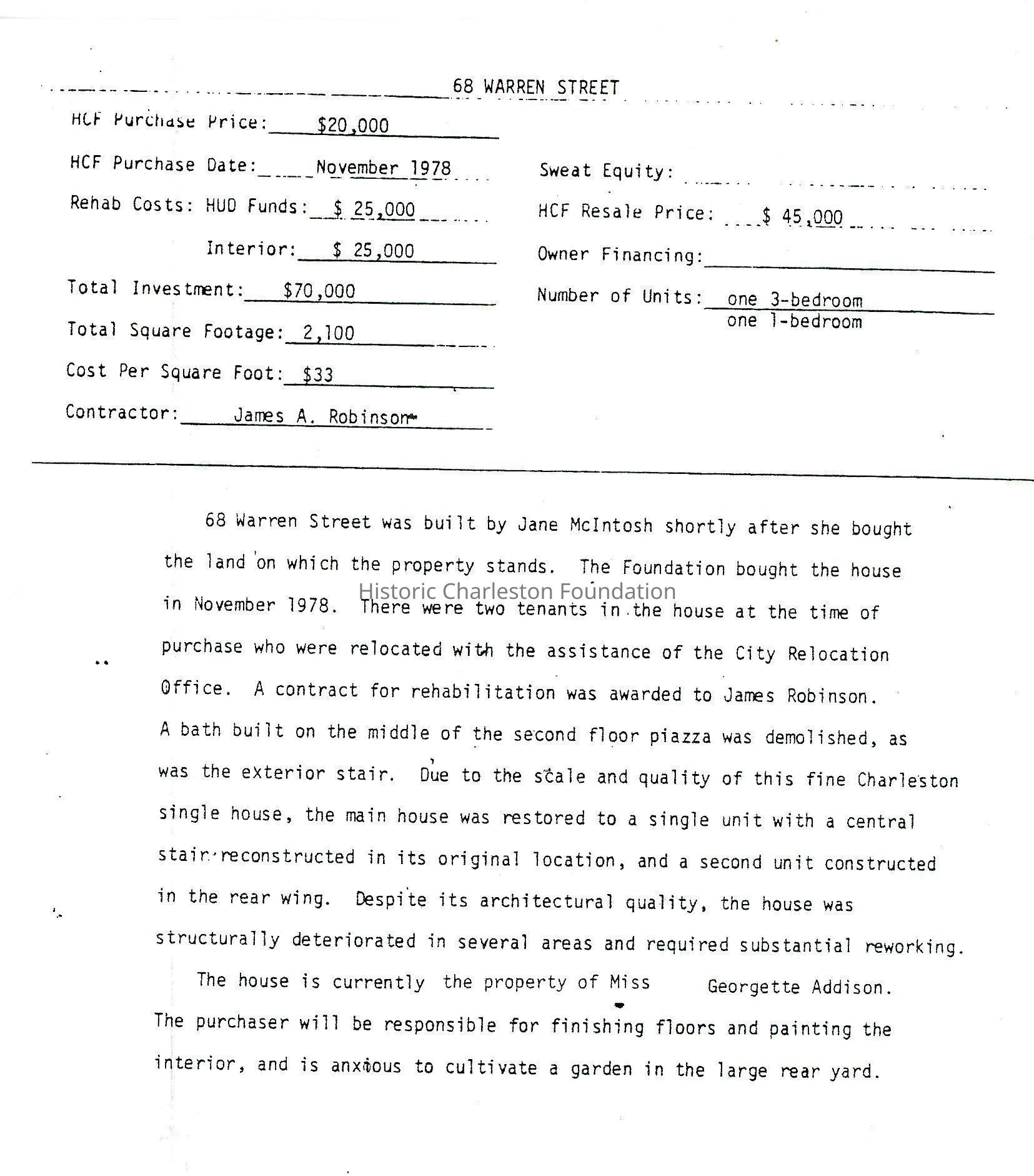 Home Ownership Program (HCF Revolving Fund), Radcliffeborough, Wraggborough, Historic Charleston Foundation, Historic buildings--Conservation and restoration--South Carolina--Charleston, Historic preservation--South Carolina--Charleston, Neighborhoods--Conservation and restoration--South Carolina--Charleston, Neighborhood planning--South Carolina--CharlestonArchive Details