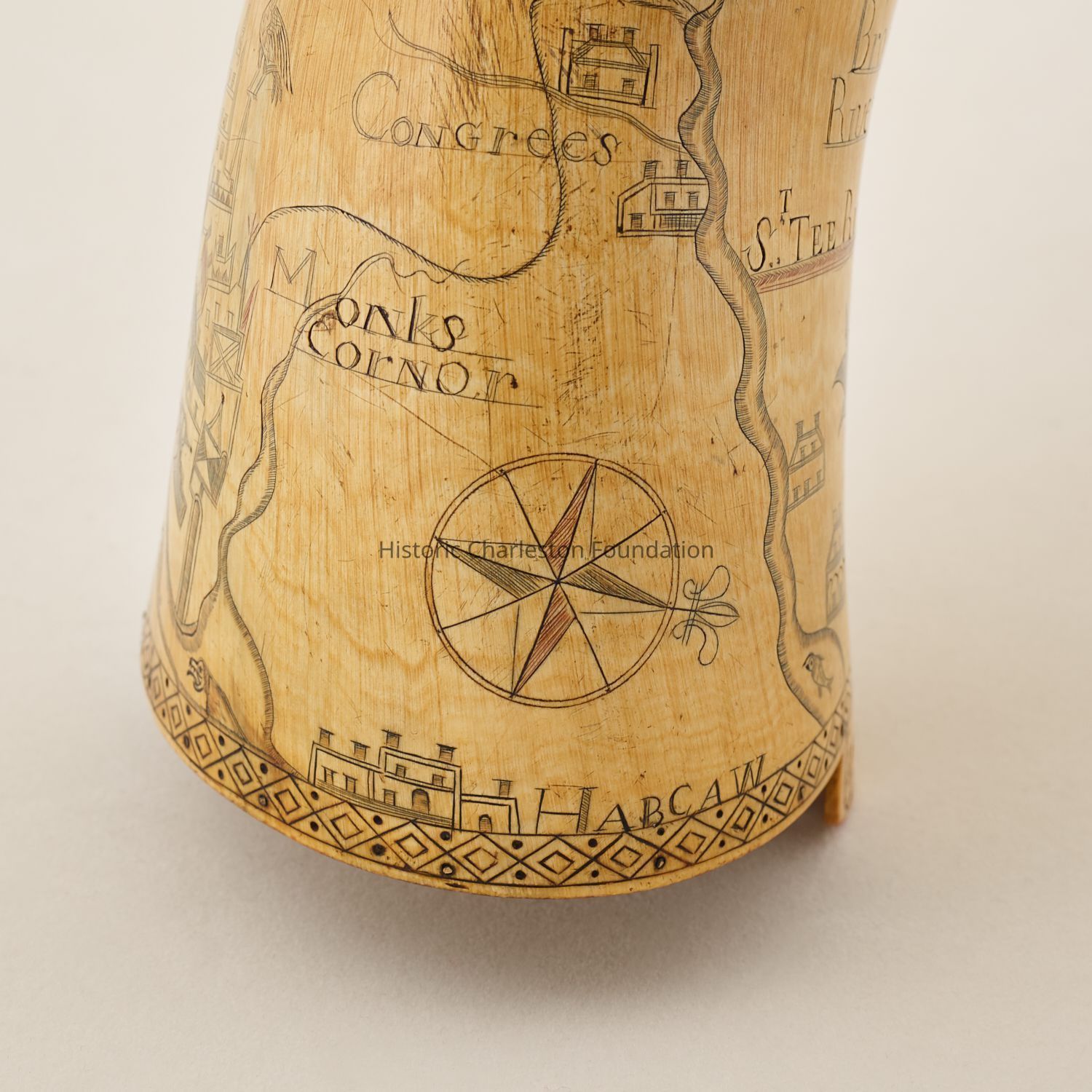 Carolina Map Powder Horn with a View of Charleston, South CarolinaContext