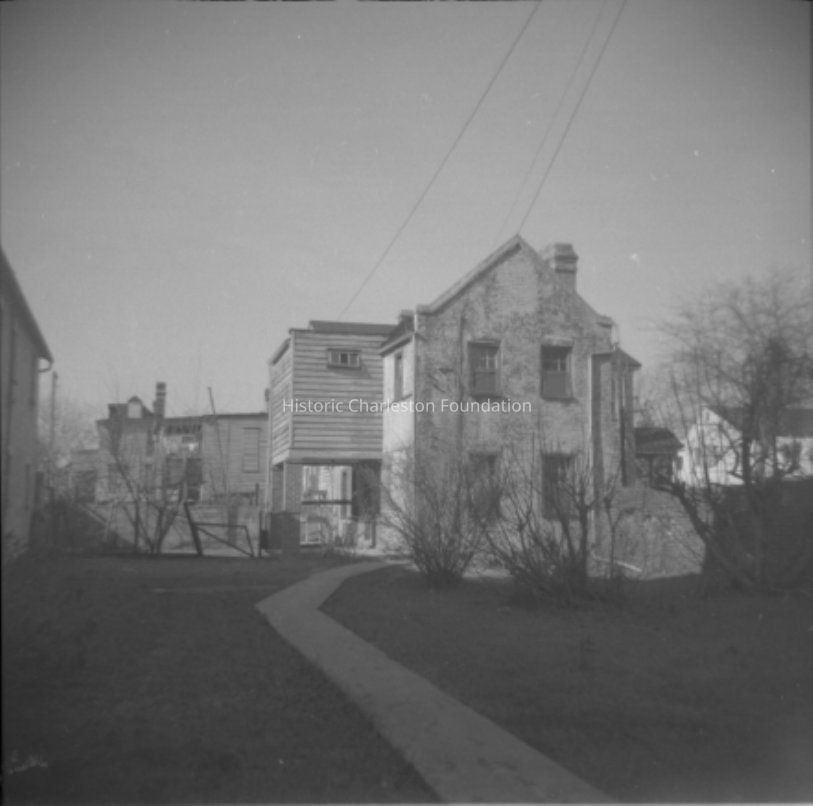 B&W photograph identified as 315 East Bay Street, corner view of what appears to be rear of the house. ARP [Ansonborough Rehabilitation Project] handwritten on verso of photo.Collection