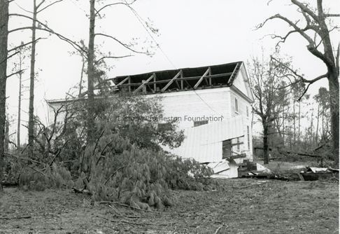 d: Dirleton Plantation House (Pee Dee River Rice Planters Historic District, Georgetown County) after Hurricane Hugo.