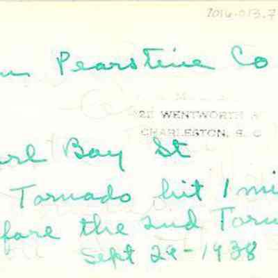 Handwritten on back of photo: "I.M. Pearlstine Co. East Bay Street. First tornado hit 1 minute before the 2nd tornado. Sept. 29, '38."