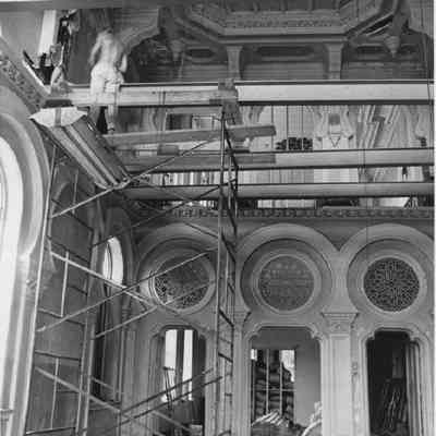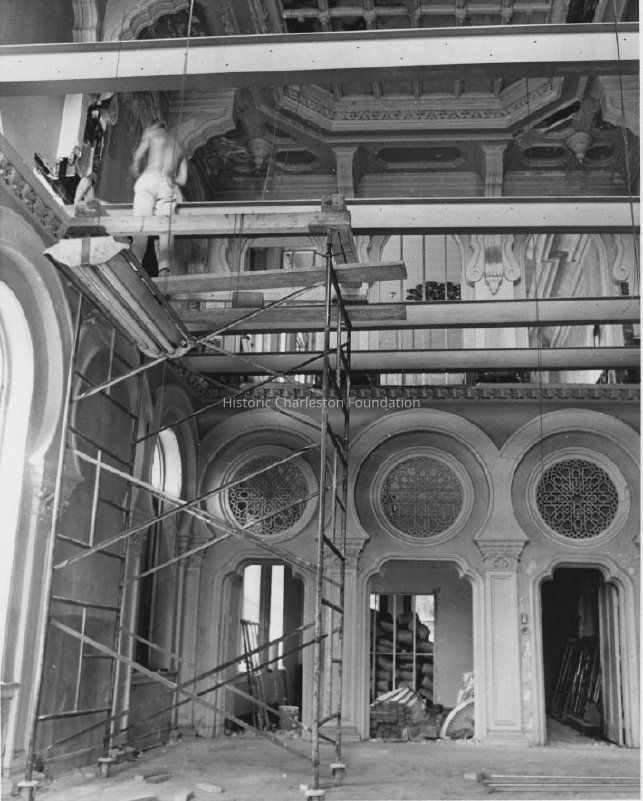 b: Interior restoration in progress. Note on back indicates that the photo appeared in the Charleston Evening Post on 6/17/1969.Collection
