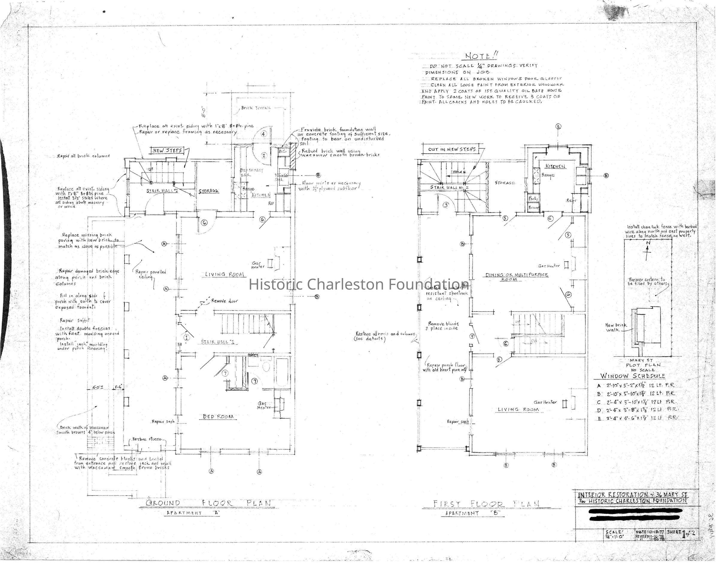Title of drawing: Interior Restoration of 36 Mary Street for Historic Charleston Foundation