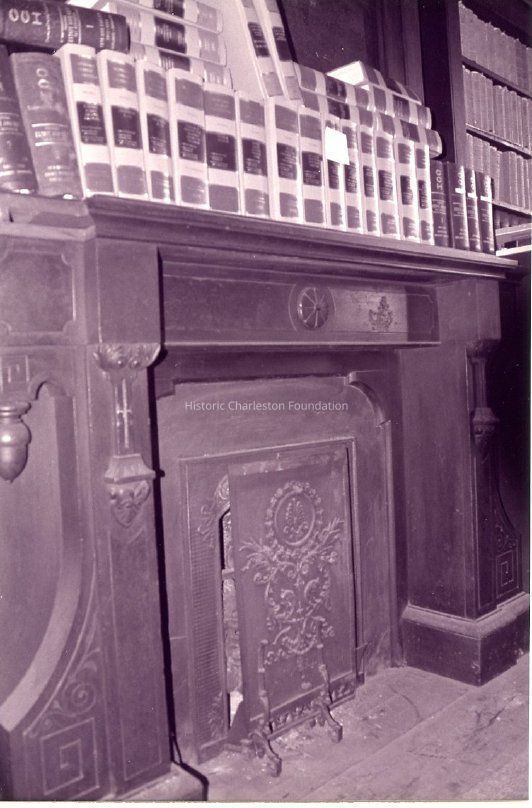 Nineteen B&W photographs of an interior room of 7 Broad Street. Features the wood built-in bookcase, paneling, moldings, door and window surrounds, fireplace, and ceiling medallions. Possibly taken as documentation of the repair work for which HCF submitted a proposal (see property file). (Only photos A, H, J, L, Q, R scanned.)Collection