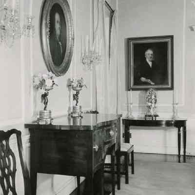 b: Room with portraits and other decorative objects and furnishings.Collection