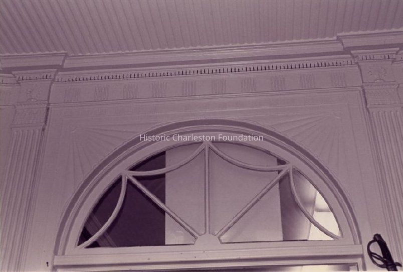 b-c: Decorative molding and transom window.