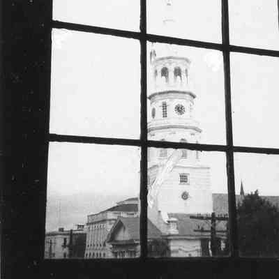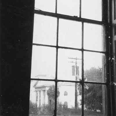 f: View out window, third floor landing.Photograph Details