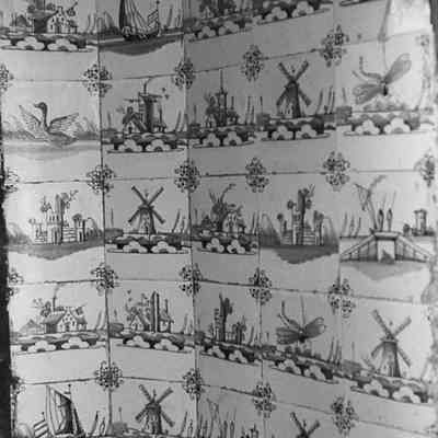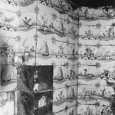 f: Unidentified room with another fireplace lined with Delft tiles.