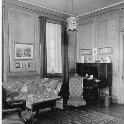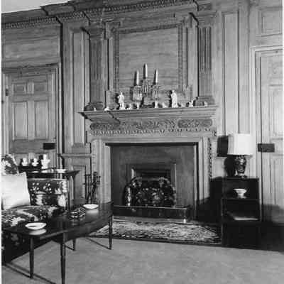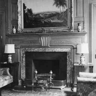h-n: Unidentified room with fireplace and carved wood mantel (photos J-L not scanned)