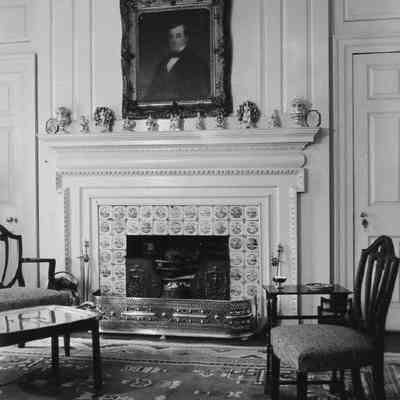 f: Room with fireplace with Delft tile surround