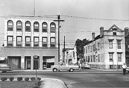 B&W photograph of 272 Meeting Street at the intersection at Society Street and 67 Society Street [~270 Meeting]. Street elevation.Collection