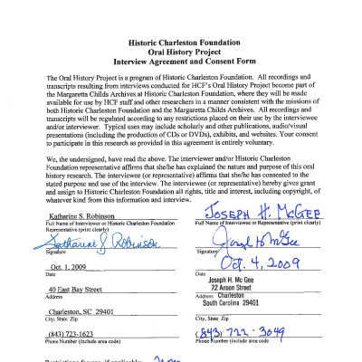 United States History, Historical societies, etc., Lowcountry Digital Library, McGee, Joseph H.--Interviews, Historic Charleston Foundation--History, Charleston (S.C.)--History--20th century, Charleston (S.C.)--Social life and customs, Historic preservation--South Carolina--Charleston--History--20th century, Oral historiesPublication Details