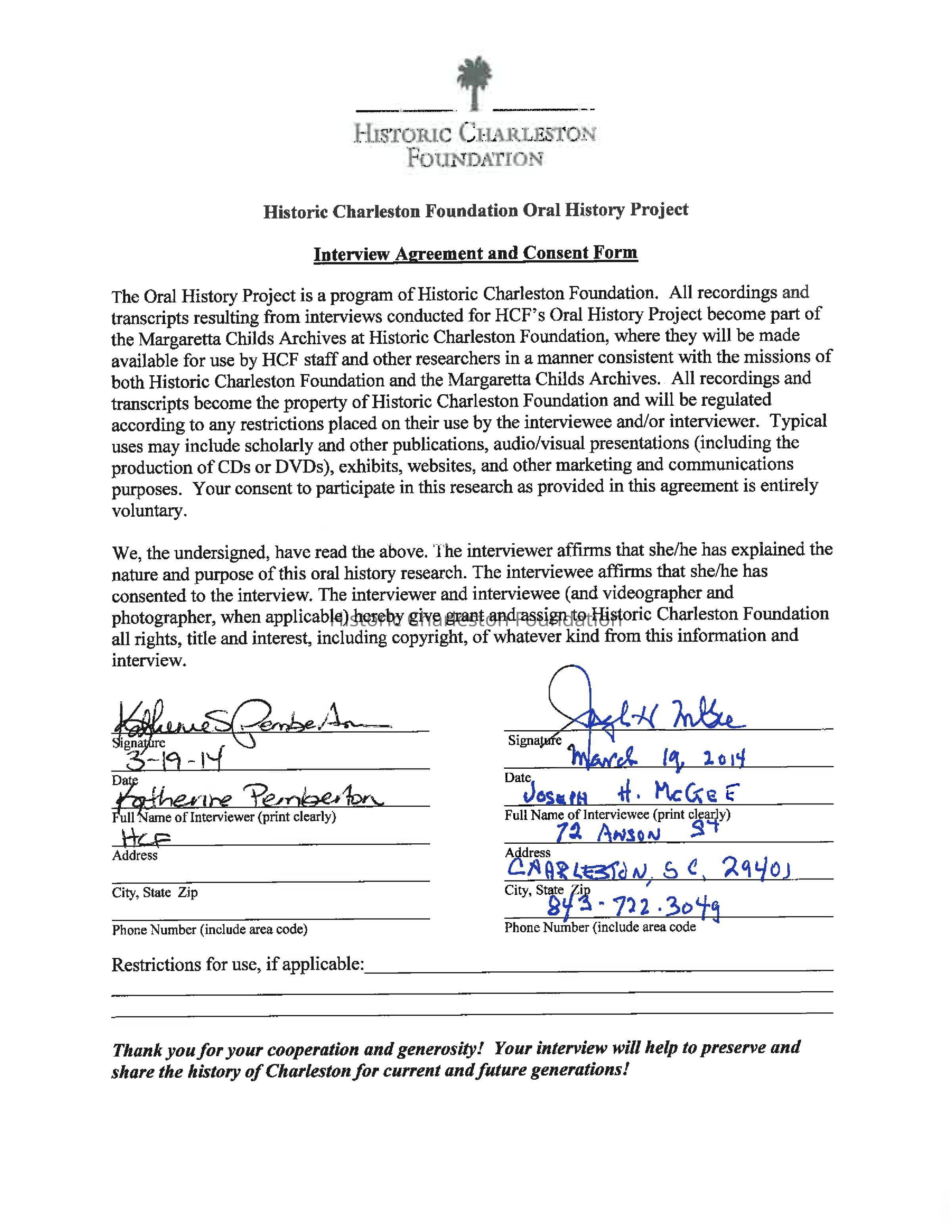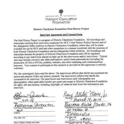 Date of interview: March 19, 2014. Interview conducted at Historic Charleston Foundation (Missroon House) by Katherine Pemberton, HCF Manager of Research and Education. Arnie Blum and Katie Batrelle, videographers.