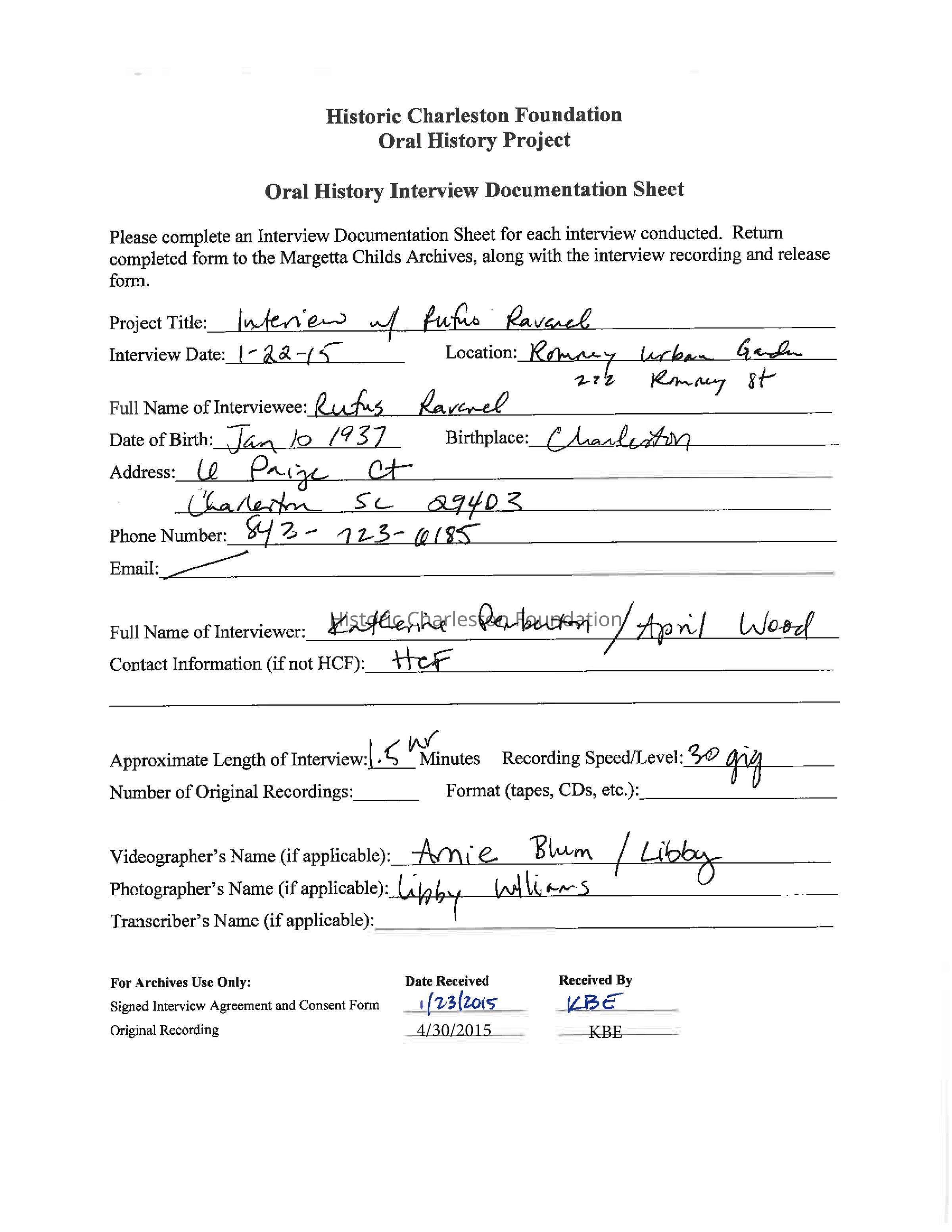 Interview with Rufus Ravenel [DVD]Entry/Object ID