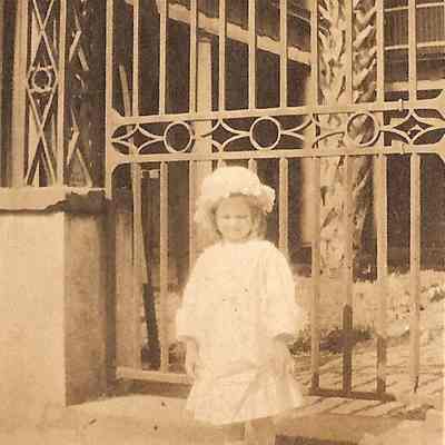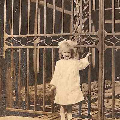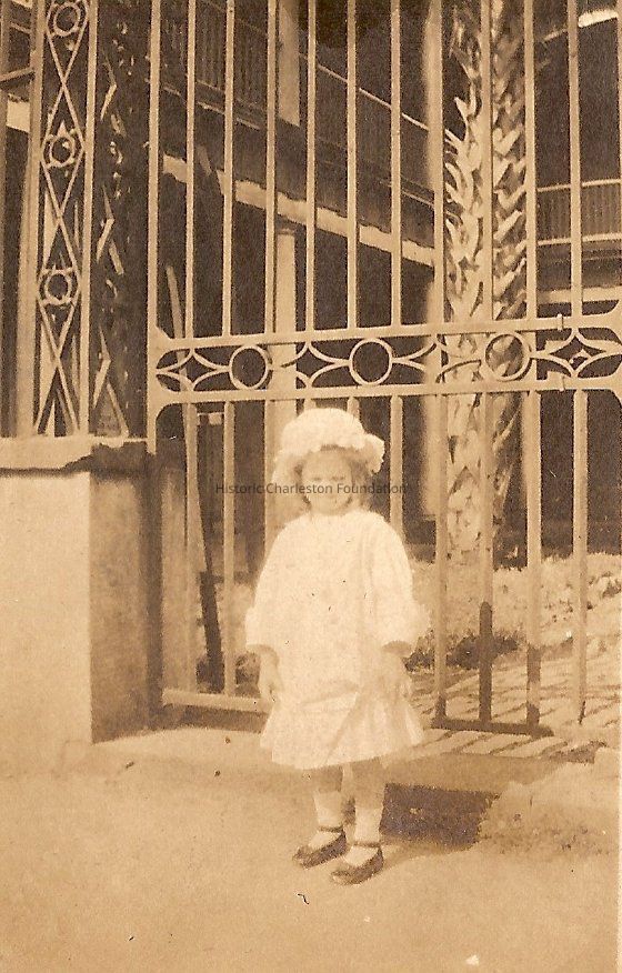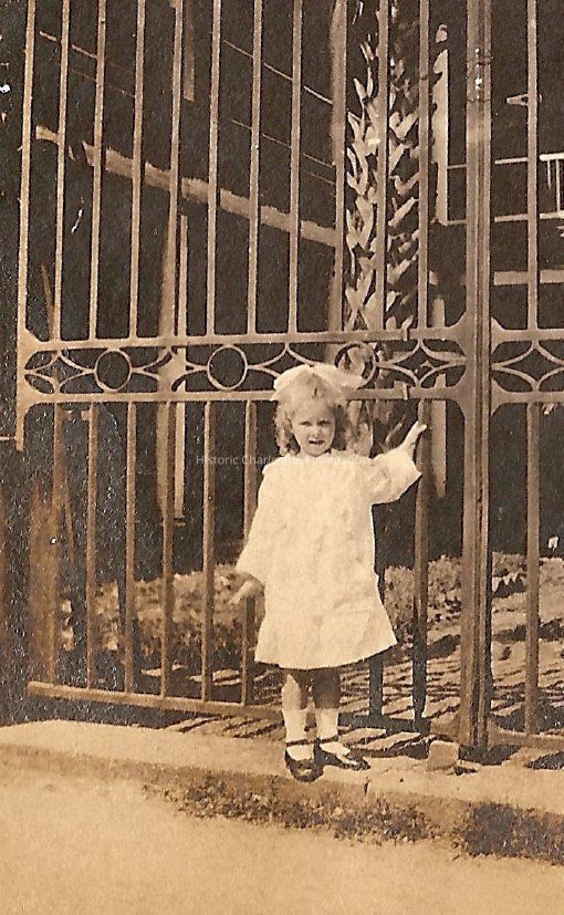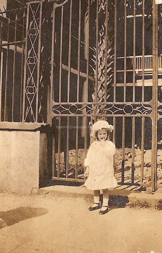 b-c: Young girl in front of William Aiken House gates.Collection