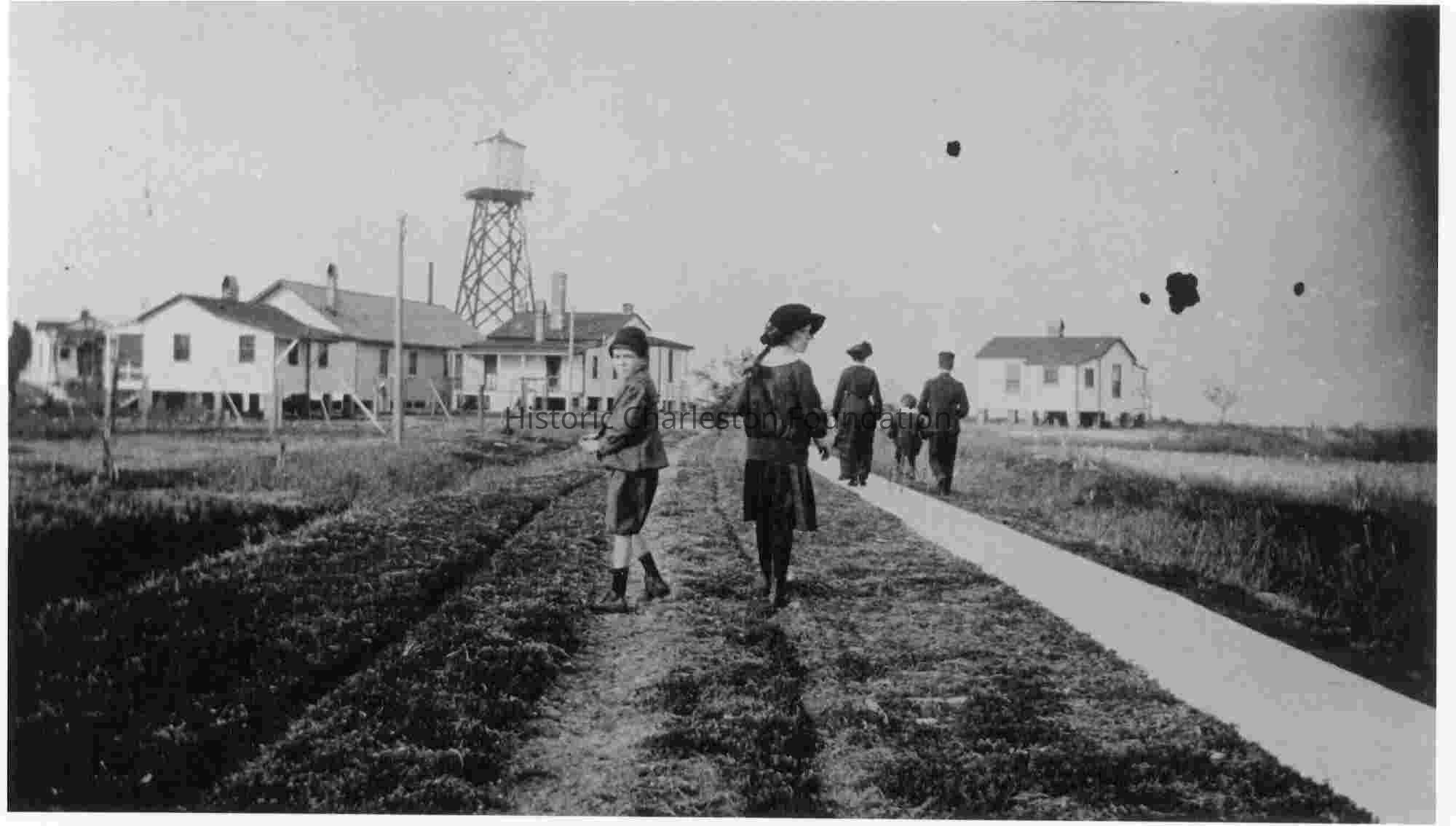 Photo is identified as the Quarantine Station at Fort Johnson, James Island. Originally identified as James and one of the twins with unidentified group at quarantine station.Collection