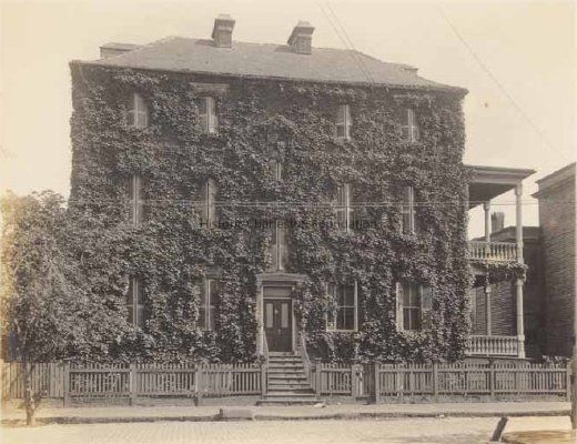 Scan of photograph of 55 Laurens Street (James Jervey House), street (front) elevation. Front facade is covered in vines.Photograph Details