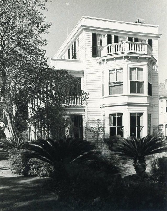 B&W photograph of the James Ladson House (31 Meeting Street), corner view showing the east (front) and south (piazzas) elevation.Collection