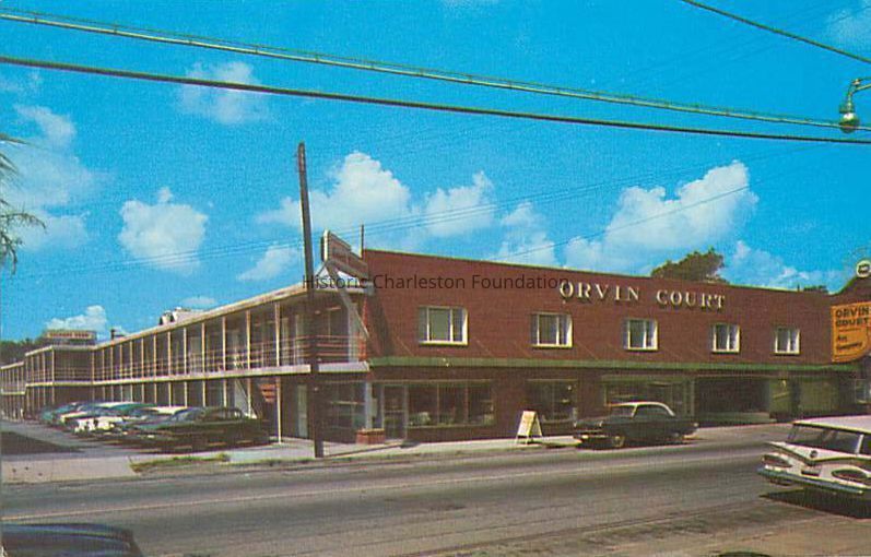The Orvin Inn, also known as the Orvin Motor Court, was located at 194 Calhoun Street. A postcard boasts "106 Rooms - AC and TV - 24 Hour Switchboard Service - Heated Swimming Pool - Restaurant, Banquet and Convention Facilities." The building was later named The College Inn when the College of Charleston purchased the motel and used it to house female students until the 1990s. At some point thereafter, the building was demolished and used as a parking lot, and in the mid-2000s, construction began on the science and mathematics building, which is there today. (Post & Courier articles accessed via the database "America's News-Historical and Current.")Collection