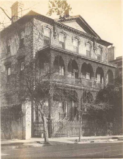 Rutledge & Rhett House - 118 [sic] Broad Street. Residence of "Dictator" John Rutledge. In the charming room the U.S. Courts sat for a tie after the Confederate War. The living room balconies were added by Mr. Thos. Gadsden who they let in in 1853. It is today the property of R. Goodwyn Rhett.Lexicon
