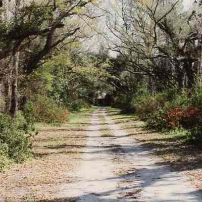 12: Early 20th century house among the palmetto trees and unpaved driveway, 2425 River Road, just south of Plow Ground Road