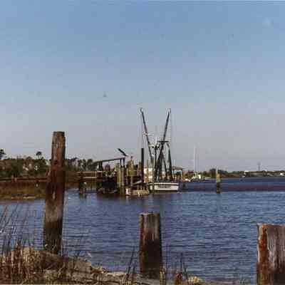 7: View of river and shrimpboat, Exchange Landing, looking north along Stono River