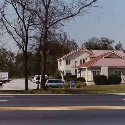 18: Island Center (shopping center) and nearby new stuccoed buildings, Bohicket Road at River Road
