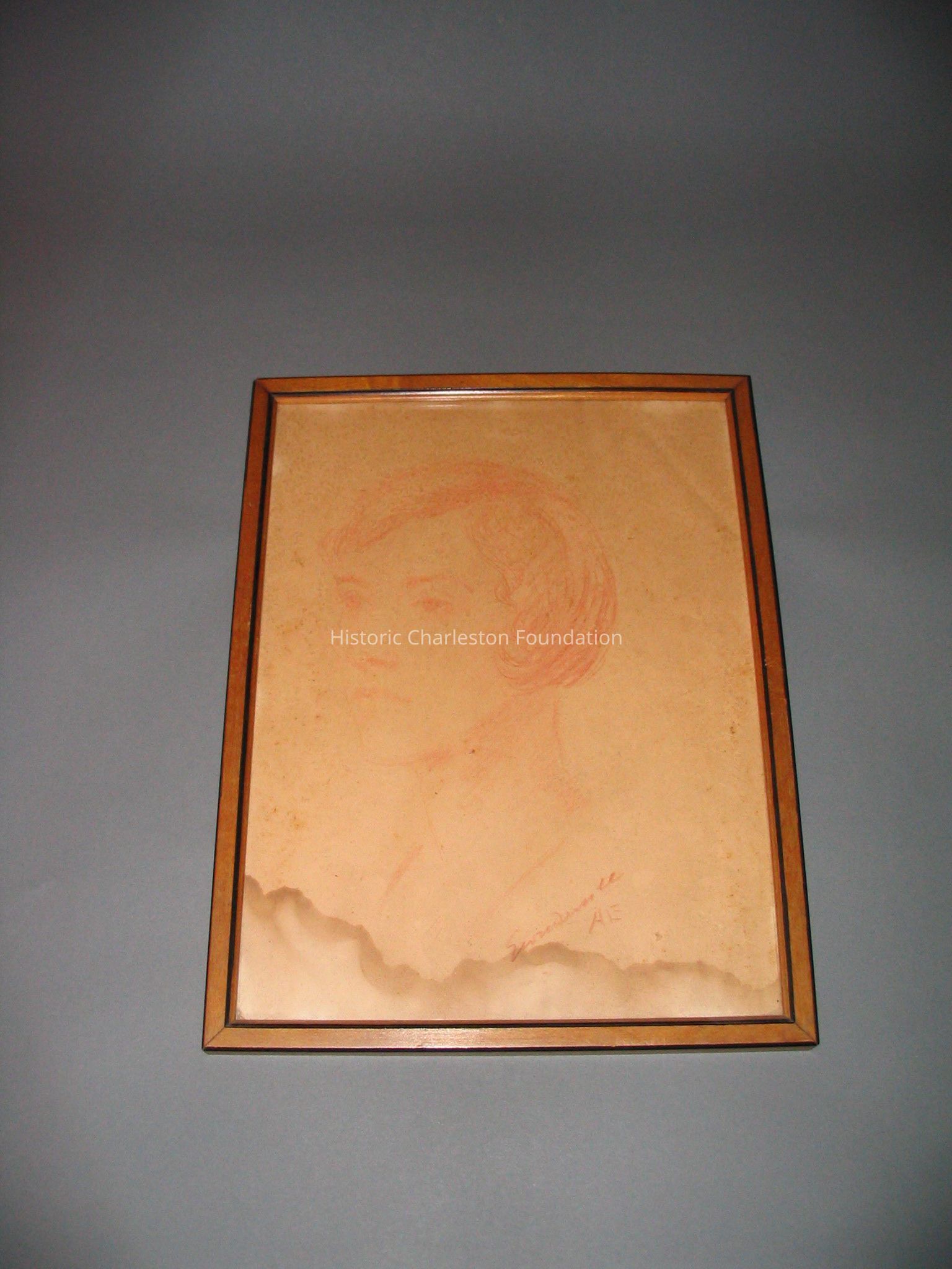 The paper was archivally hinged using Japanese paper/ starch paste onto a mat of buffered ragboard and reframed with spacers toned with watercolor in a sealed package consisting of the glass, matted picture, and 5 mil Mylar D on the back, taped around the edges with 3M 810 tape.