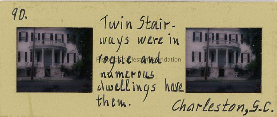 Color stereoscope slide* of a view of the Josiah Smith House (7 Meeting Street) taken from across the street.